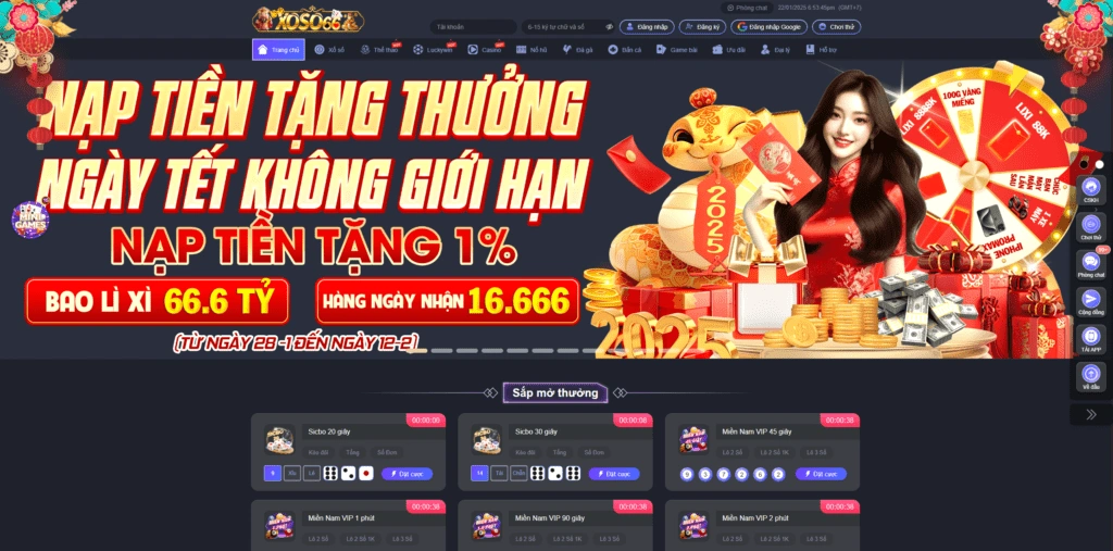 - Xổ Số Truyền Thống: Xoso66 mang đến cơ hội tham gia các kỳ quay xổ số từ ba miền, với kết quả công khai, minh bạch và độ tin cậy tuyệt đối, giúp người chơi hoàn toàn yên tâm khi tham gia.